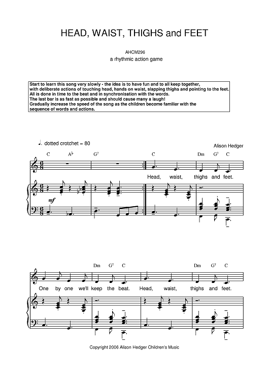 Digital Sheet Music for Head, Waist, Thighs And Feet by Alison Hedger scored for Piano/Vocal/Chords; id:391576