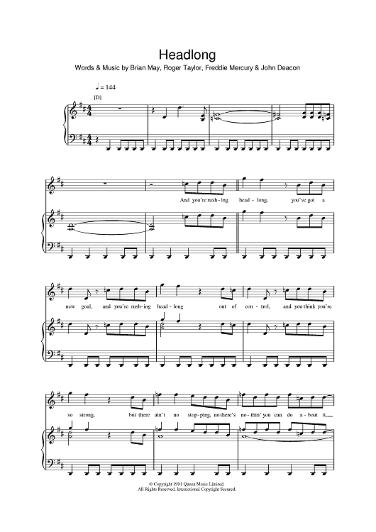 Digital Sheet Music for Headlong by Queen, Freddie Mercury, John Deacon, Brian May, Roger Taylor scored for Piano/Vocal/Chords; id:391542