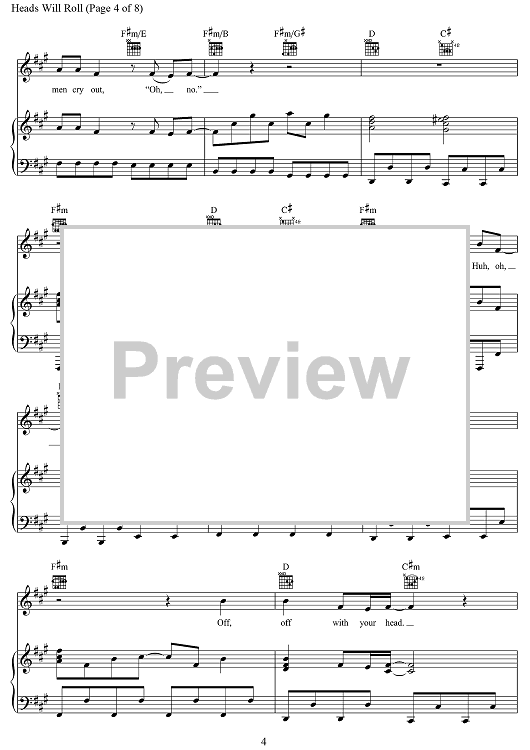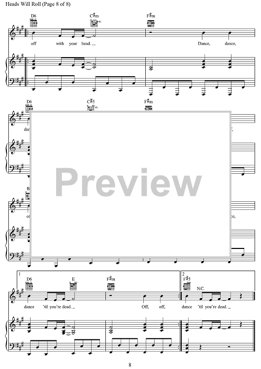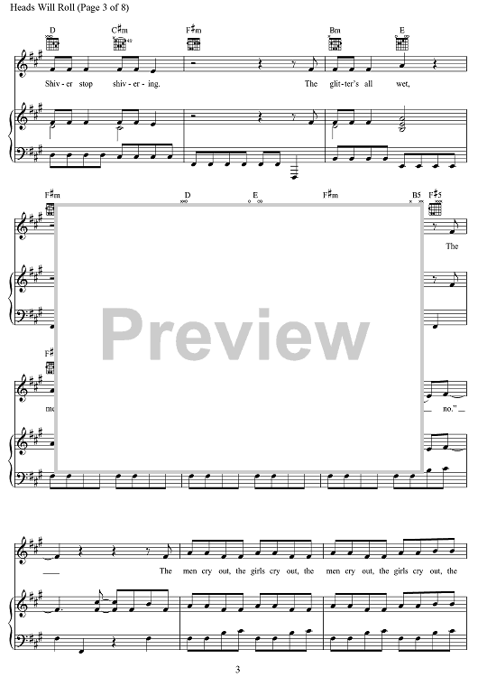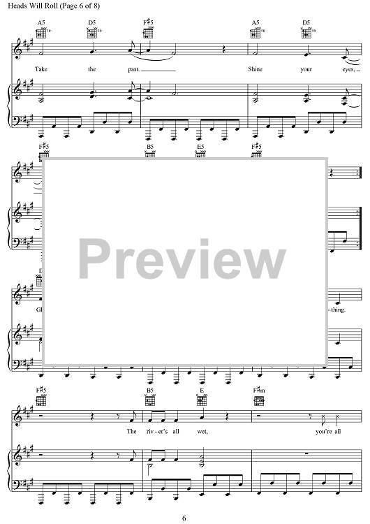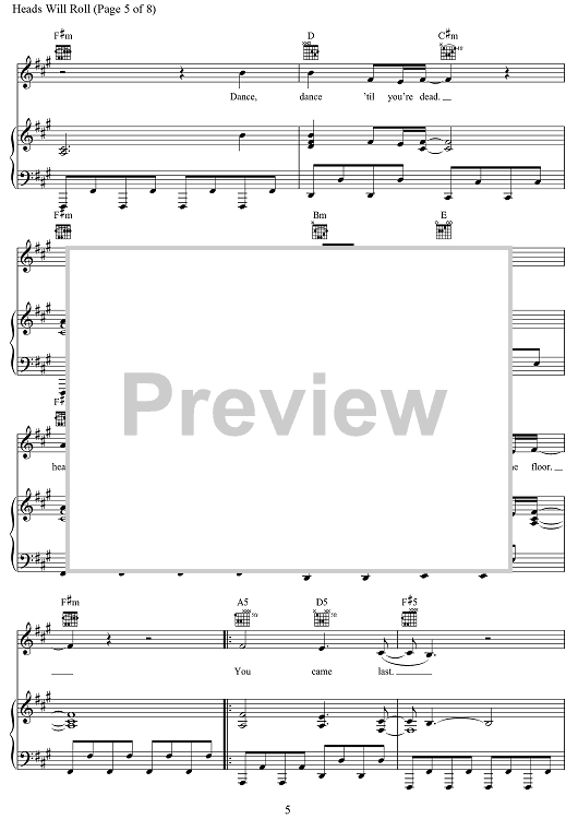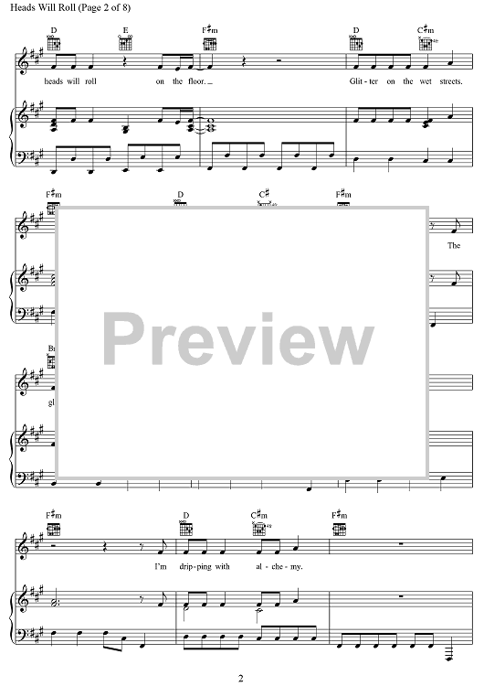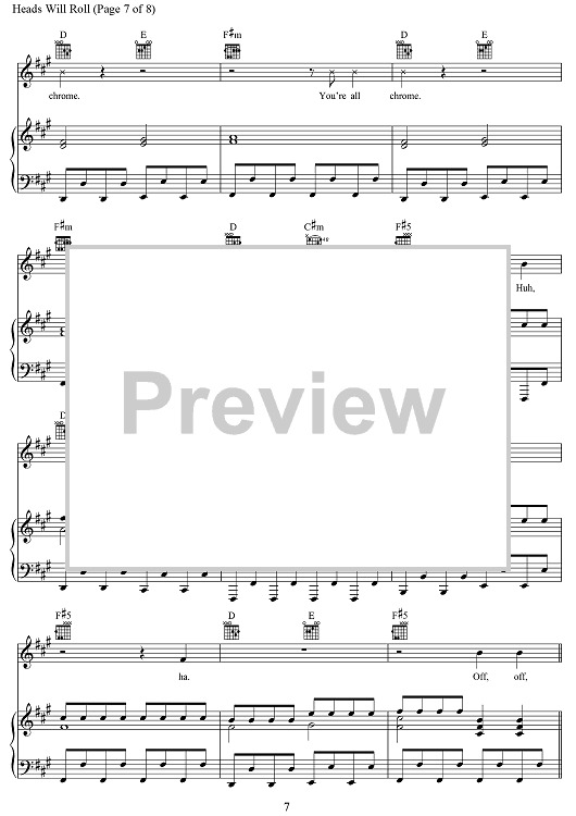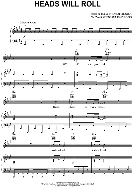 Digital Sheet Music for Heads Will Roll by Brian Chase, Karen O, Nicholas Zinner scored for Piano/Vocal/Chords; id:470408