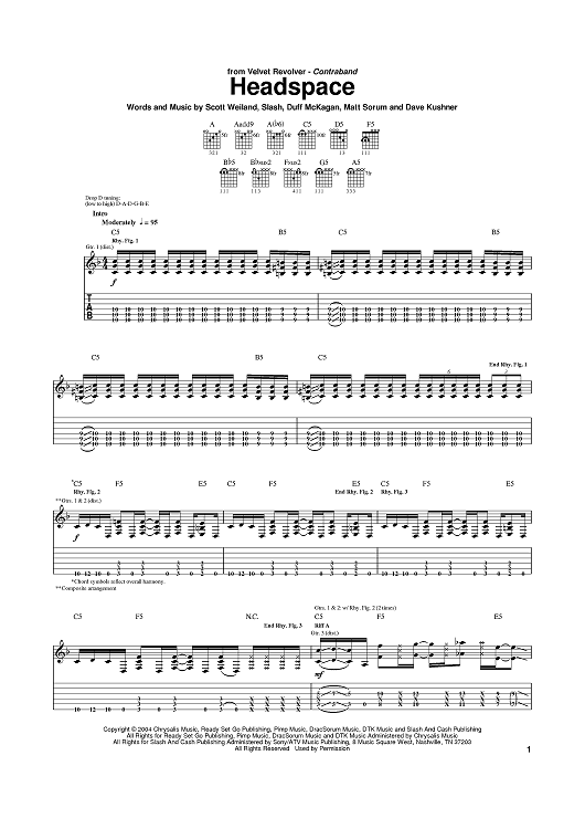 Digital Sheet Music for Headspace by Scott Weiland, Slash, Dave Kushner, Duff McKagan, Matt Sorum, Velvet Revolver scored for Guitar Tab; id:383510