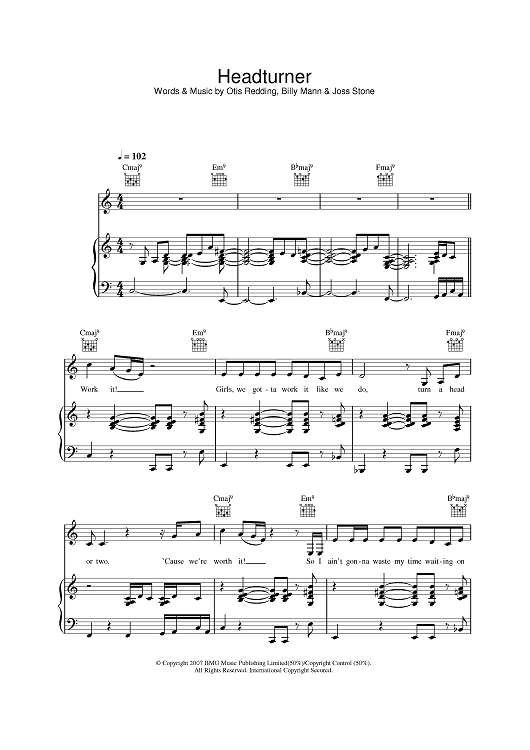 Digital Sheet Music for Headturner by Otis Redding, Billy Mann, Joss Stone scored for Piano/Vocal/Chords; id:397124