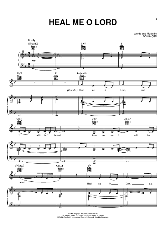 Digital Sheet Music for Heal Me O Lord by Don Moen scored for Piano/Vocal/Chords; id:372125