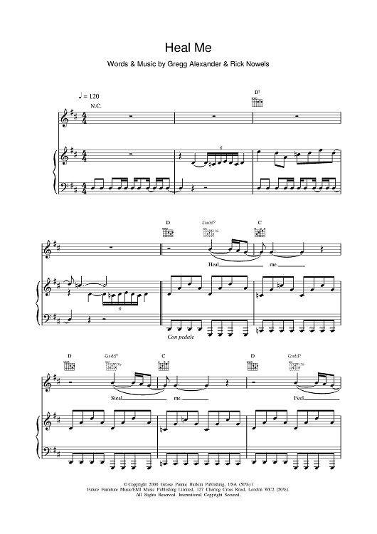 Digital Sheet Music for Heal Me by Rick Nowels, Gregg Alexander, Ronan Keating scored for Piano/Vocal/Chords; id:377124