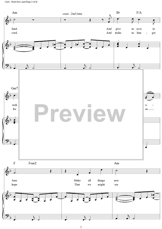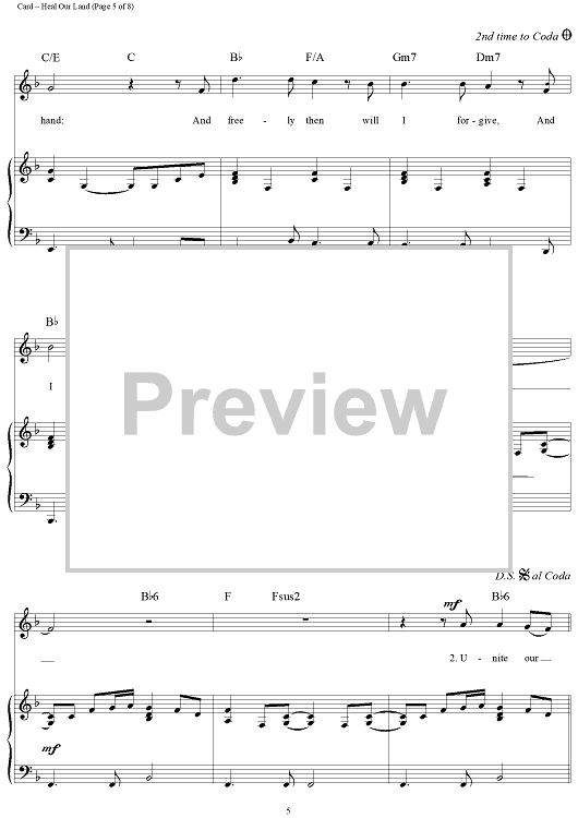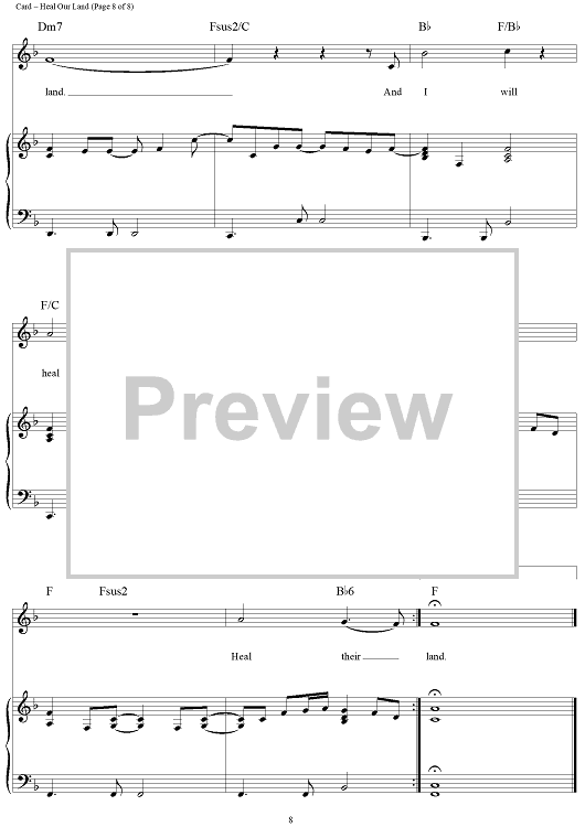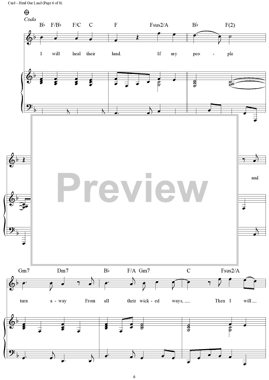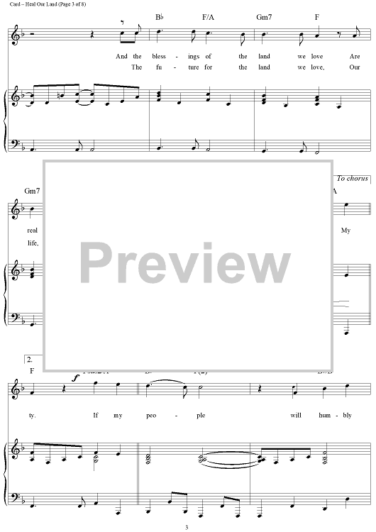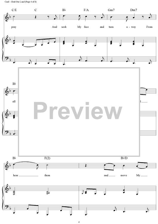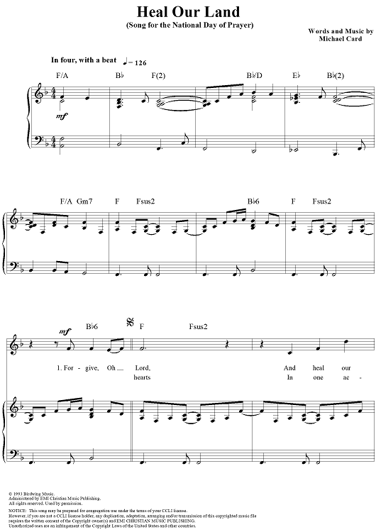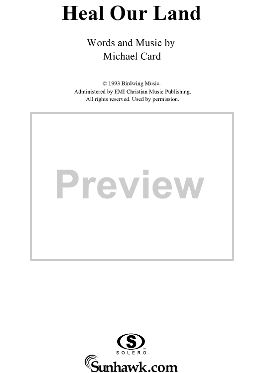 Digital Sheet Music for Heal Our Land by Michael Card scored for Piano/Vocal/Chords; id:115992