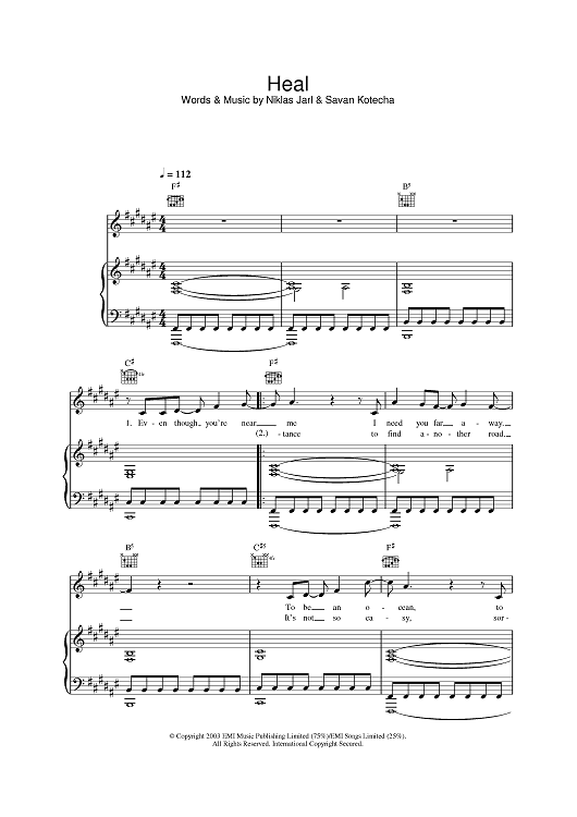 Digital Sheet Music for Heal by Westlife scored for Piano/Vocal/Chords; id:378431