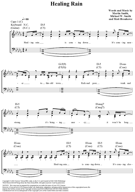 Digital Sheet Music for Healing Rain by Martin Smith, Michael W. Smith, Matt Bronleewe scored for Piano/Vocal/Chords; id:320946