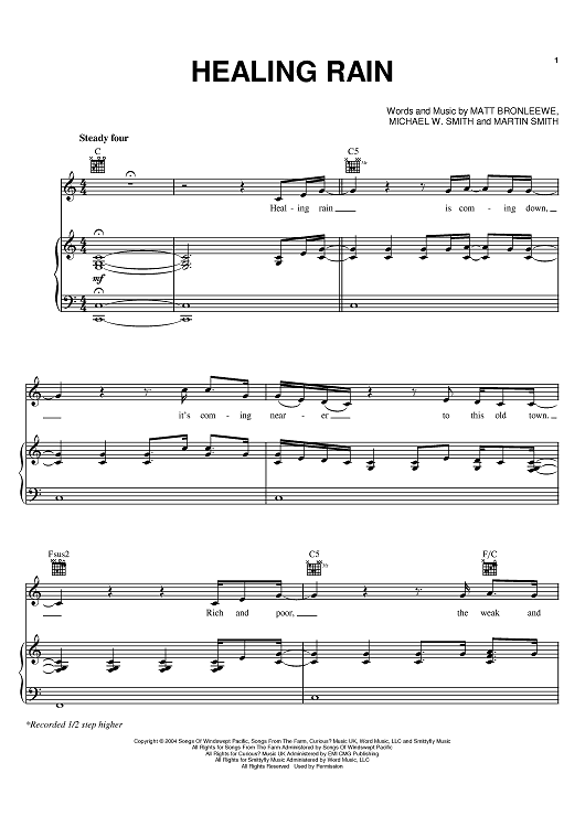 Digital Sheet Music for Healing Rain by Martin Smith, Michael W. Smith, Matt Bronleewe scored for Piano/Vocal/Chords; id:380625