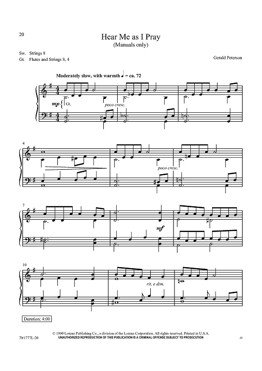 Digital Sheet Music for Hear Me as I Pray by Gerald Peterson scored for Organ Solo; id:437678