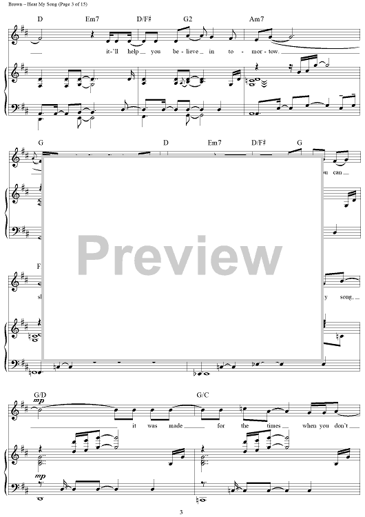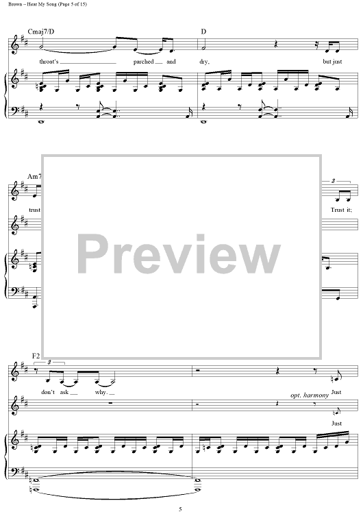 Digital Sheet Music for Hear My Song (Solo version) by Jason Robert Brown scored for Piano/Vocal/Chords; id:406665
