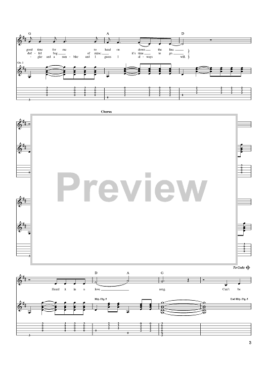 "Heard It In A Love Song" Sheet Music by The Marshall Tucker Band