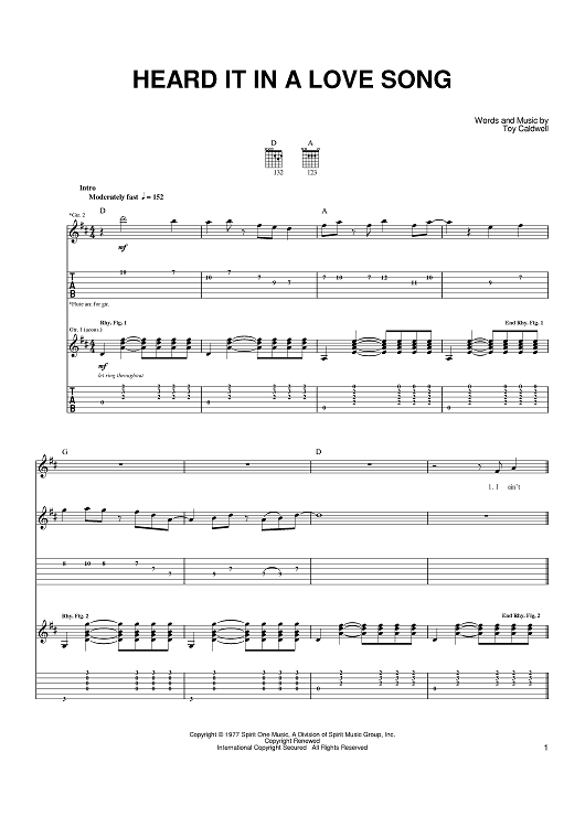 Digital Sheet Music for Heard It In A Love Song by Toy Caldwell, The Marshall Tucker Band scored for Easy Guitar Tab; id:396574