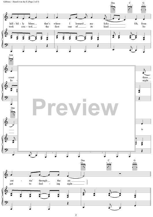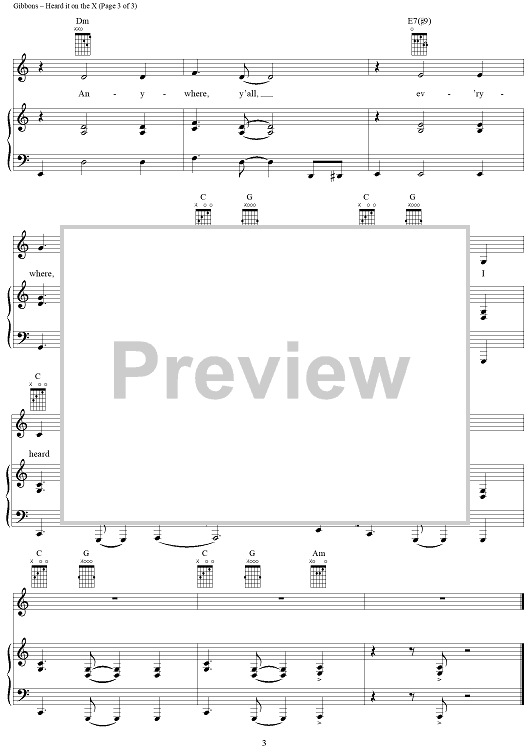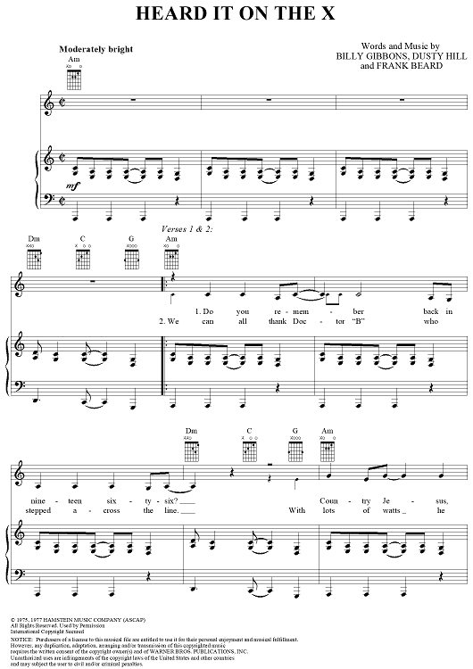 Digital Sheet Music for Heard It On The X by Billy Gibbons, Dusty Hill, Frank Beard, ZZ Top scored for Piano/Vocal/Chords; id:241671