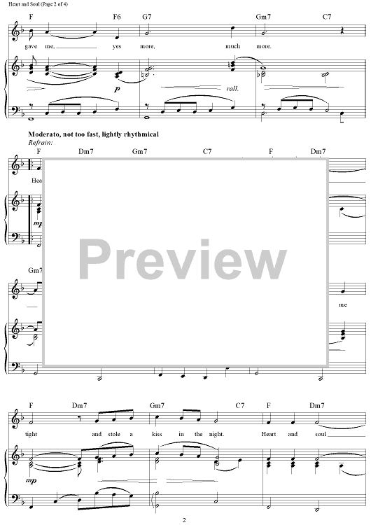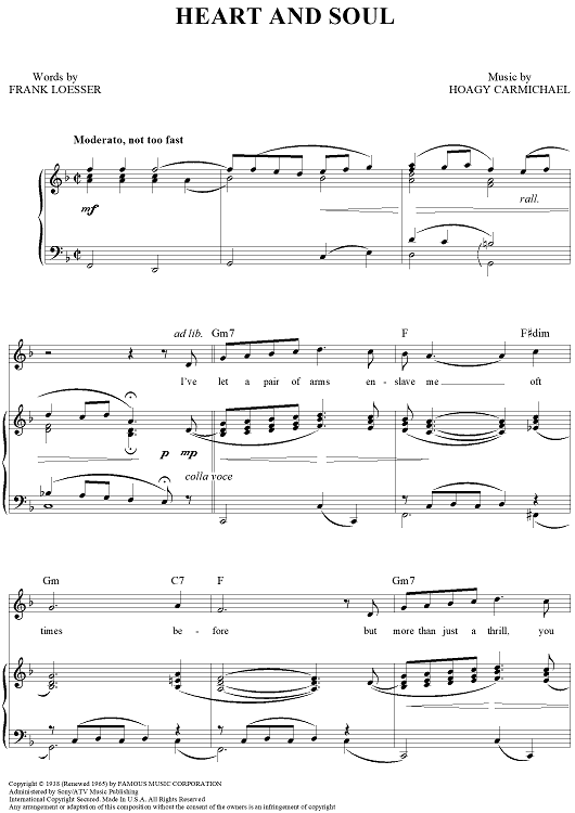Digital Sheet Music for Heart and Soul by Hoagy Carmichael, Frank Loesser scored for Piano/Vocal/Chords; id:273307