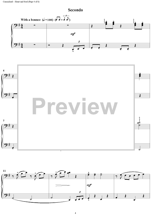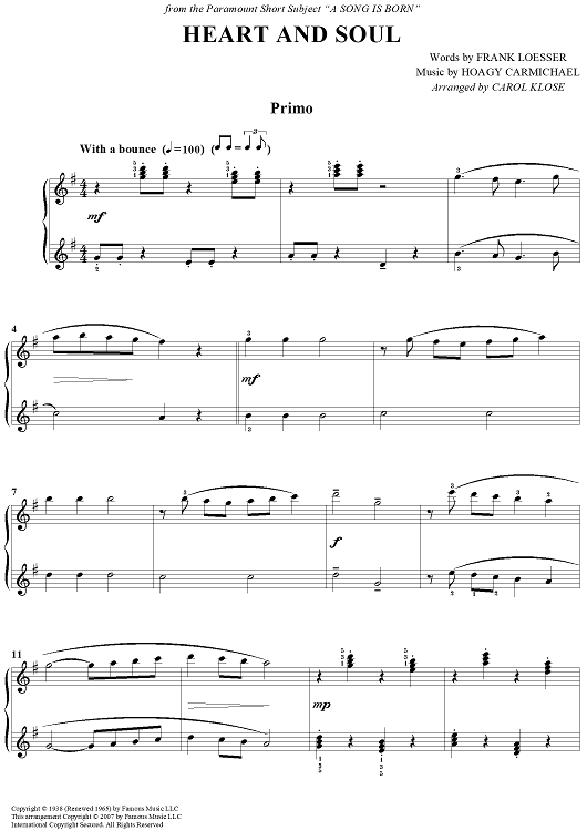 Digital Sheet Music for Heart And Soul by Hoagy Carmichael, Carol Klose, Frank Loesser scored for 1 Piano, 4 Hands; id:397218