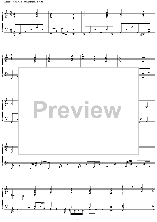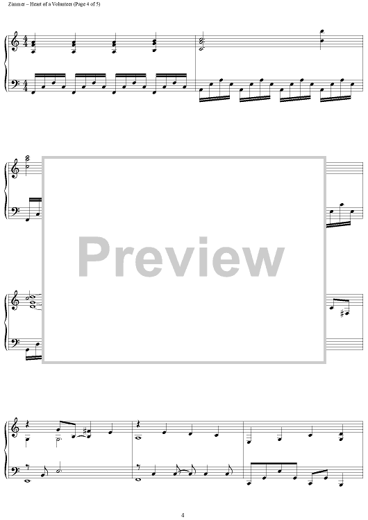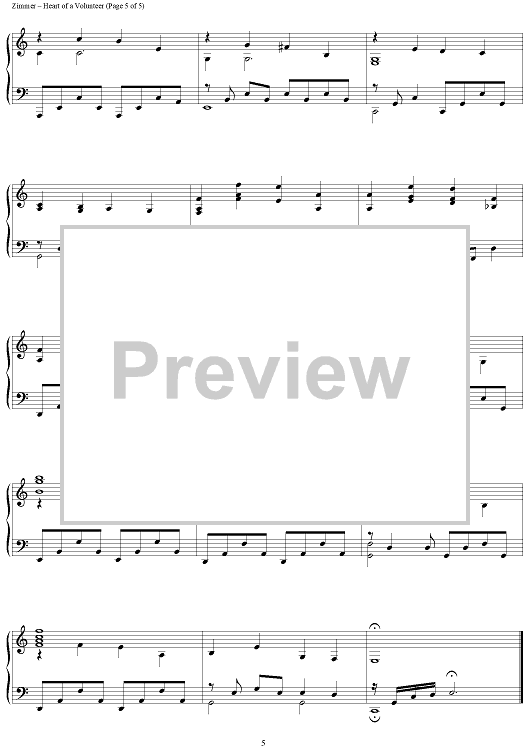 Digital Sheet Music for Heart of a Volunteer by Hans Zimmer scored for Piano Solo; id:396504