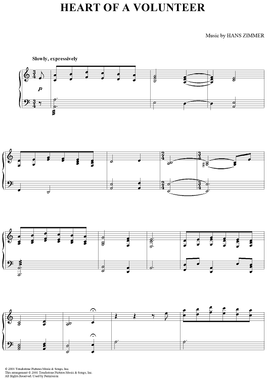 "Heart of a Volunteer" Sheet Music by Hans Zimmer