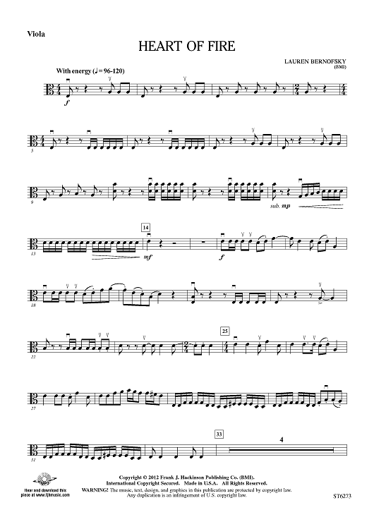 "Heart of Fire - Viola" Sheet Music by Lauren Bernofsky