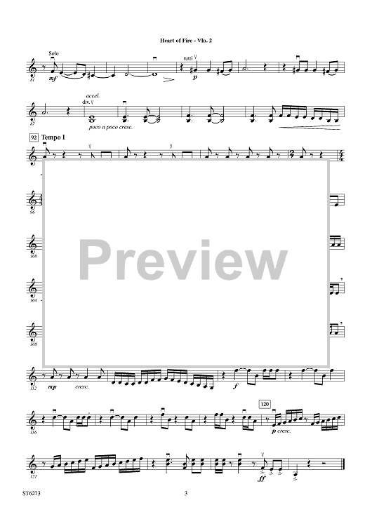 "Heart of Fire - Violin 2" Sheet Music by Lauren Bernofsky