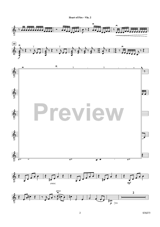 Digital Sheet Music for Heart of Fire - Violin 2 by Lauren Bernofsky scored for String Orchestra; id:431996