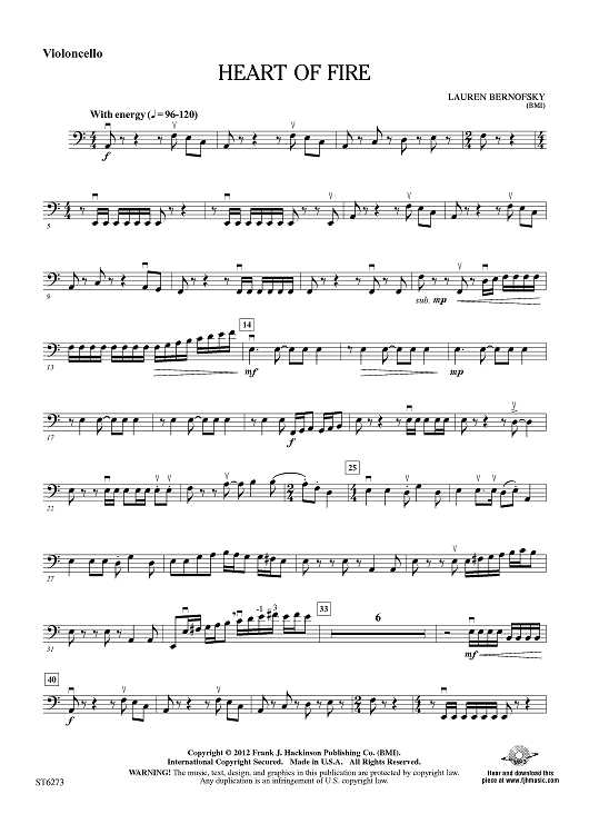 Digital Sheet Music for Heart of Fire - Violoncello by Lauren Bernofsky scored for String Orchestra; id:431999
