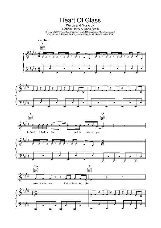 Digital Sheet Music for Heart Of Glass by Blondie scored for Piano/Vocal/Chords; id:377040