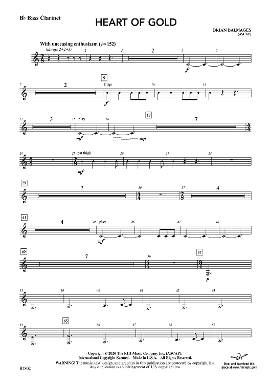 "Heart of Gold - Bb Bass Clarinet" Sheet Music by Brian Balmages