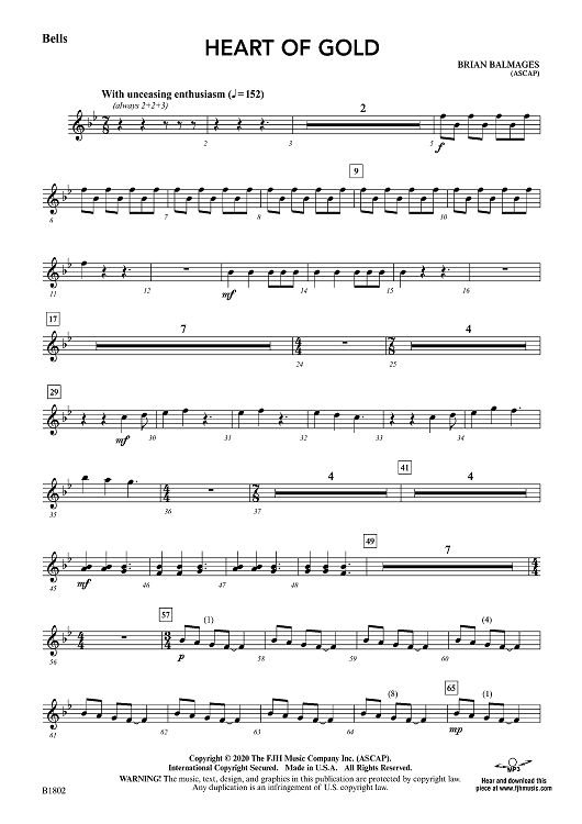 "Heart of Gold - Bells" Sheet Music by Brian Balmages