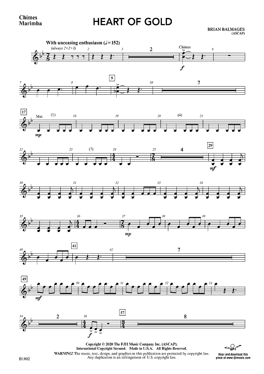 Digital Sheet Music for Heart of Gold - Chimes / Marimba by Brian Balmages scored for Concert Band; id:499910
