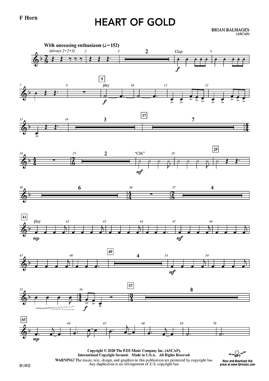 Digital Sheet Music for Heart of Gold - F Horn by Brian Balmages scored for Concert Band; id:499901