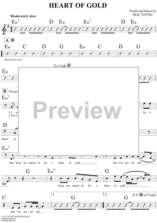 Digital Sheet Music for Heart of Gold by Neil Young scored for Lead Sheet; id:293951