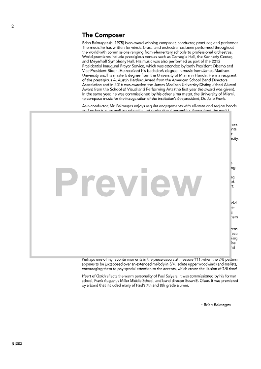 Digital Sheet Music for Heart of Gold - Score by Brian Balmages scored for Concert Band; id:471313