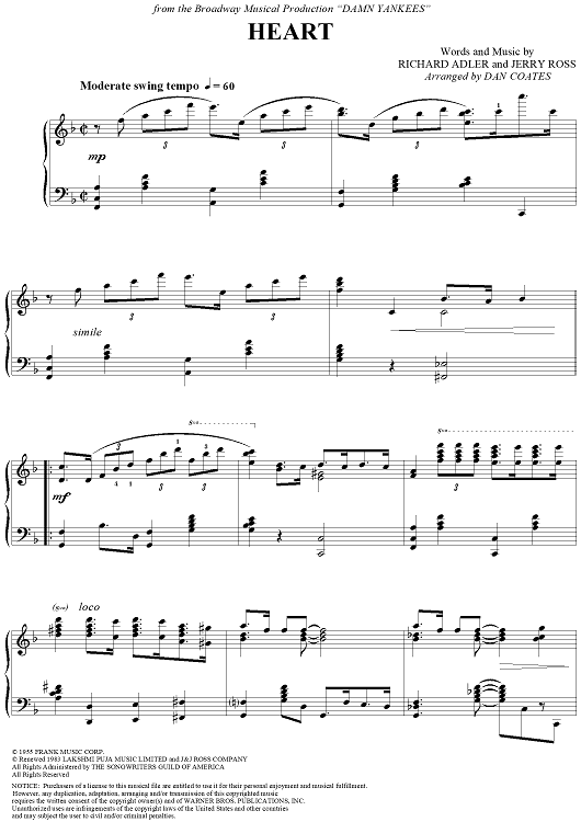 Digital Sheet Music for Heart by Dan Coates, Jerry Ross, Richard Adler scored for Piano Solo; id:276939