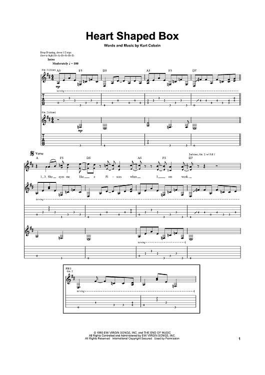 Digital Sheet Music for Heart Shaped Box by Kurt Cobain, Nirvana scored for Guitar Tab; id:371162