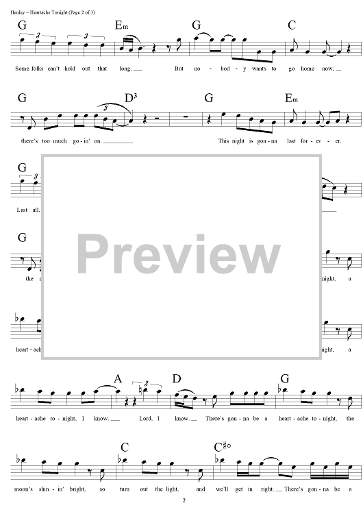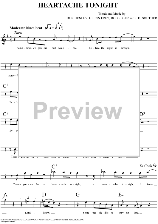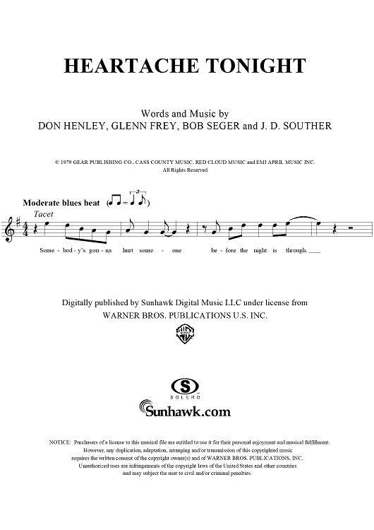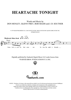 Digital Sheet Music for Heartache Tonight by Bob Seger, Don Henley, J. D. Souther, Glenn Frey, Eagles scored for Lead Sheet; id:266875