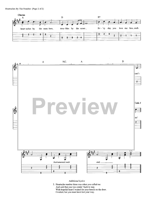 Digital Sheet Music for Heartaches by the Number by Harlan Howard, Guy Mitchell scored for Easy Guitar Tab/Vocal/Chords; id:456728