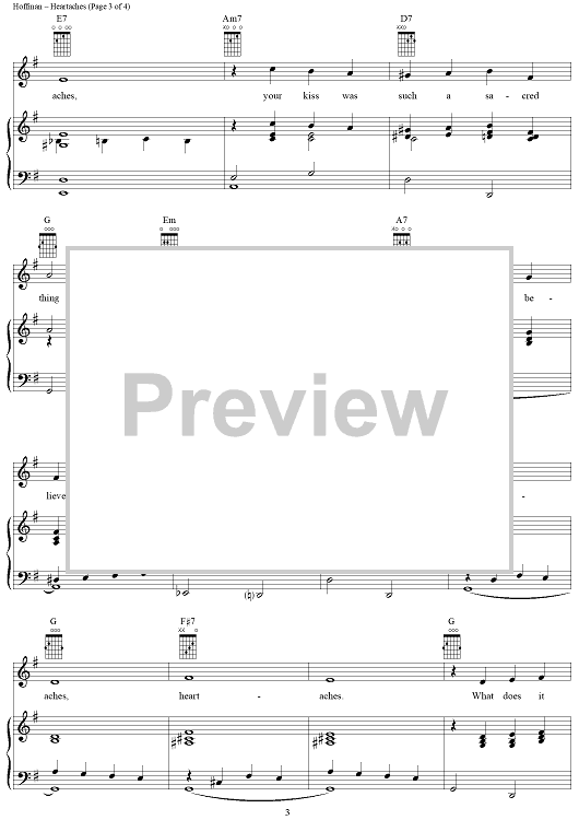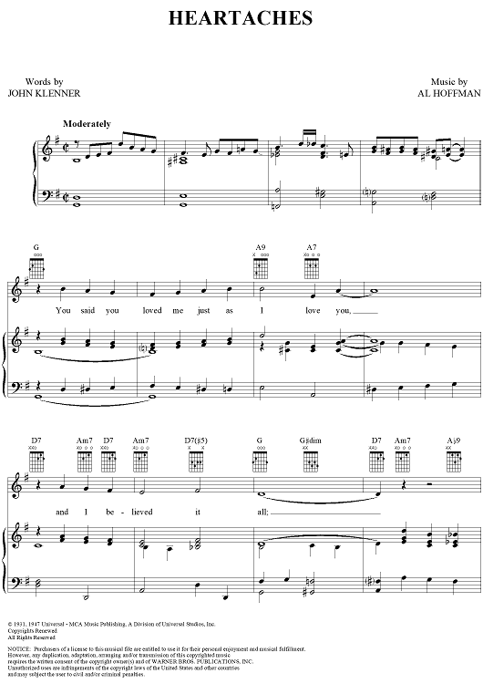 Digital Sheet Music for Heartaches by Al Hoffman, John Klenner scored for Piano/Vocal/Chords; id:297240