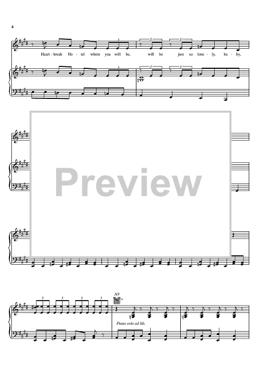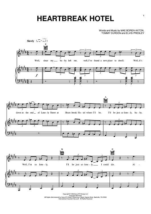 Digital Sheet Music for Heartbreak Hotel by Elvis Presley, Mae Boren Axton, Tommy Durden scored for Piano/Vocal/Chords; id:370232