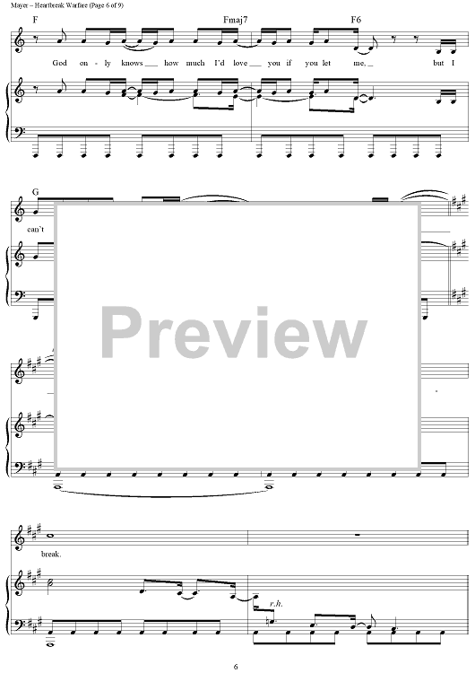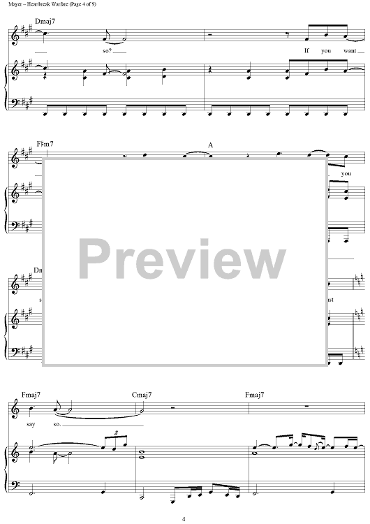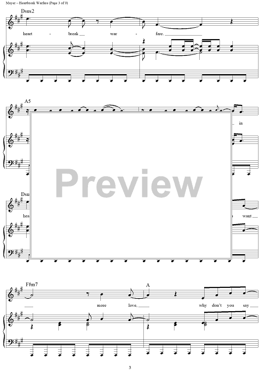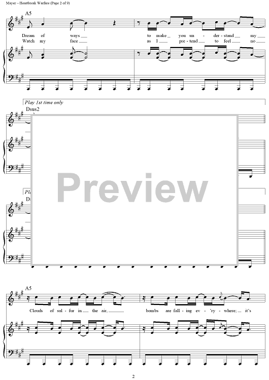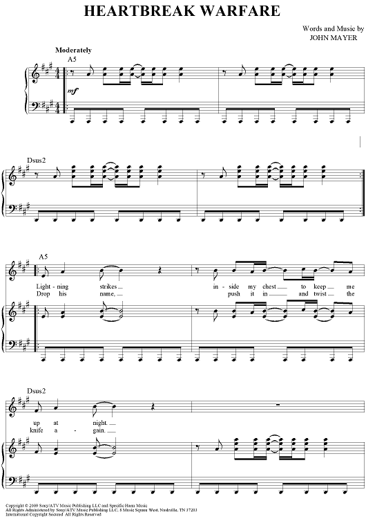 Digital Sheet Music for Heartbreak Warfare by John Mayer scored for Piano/Vocal/Chords; id:410860