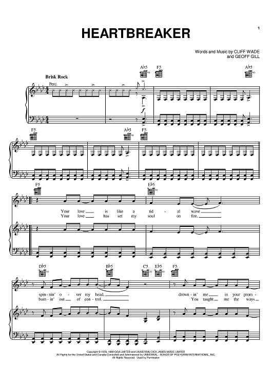 Digital Sheet Music for Heartbreaker by Geoff Gill, Cliff Wade, Pat Benatar scored for Piano/Vocal/Chords; id:381339