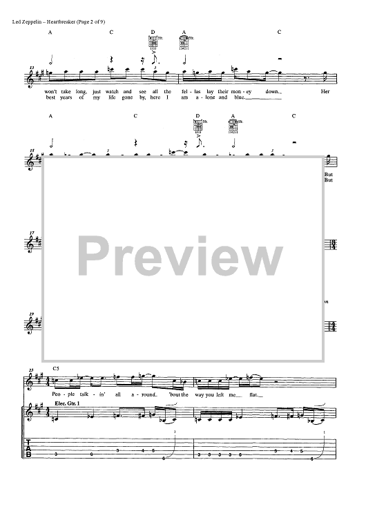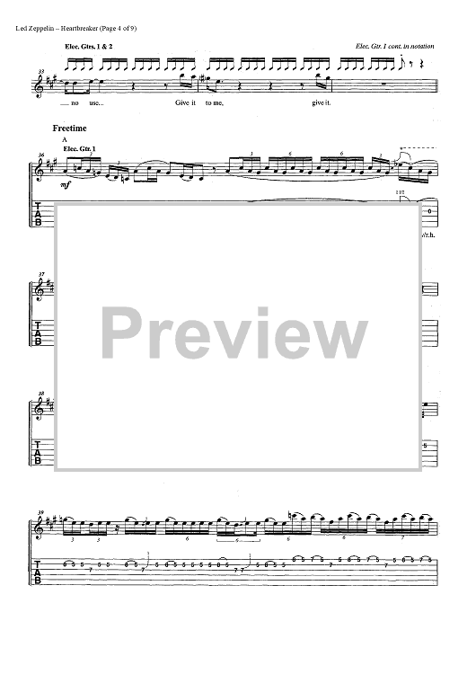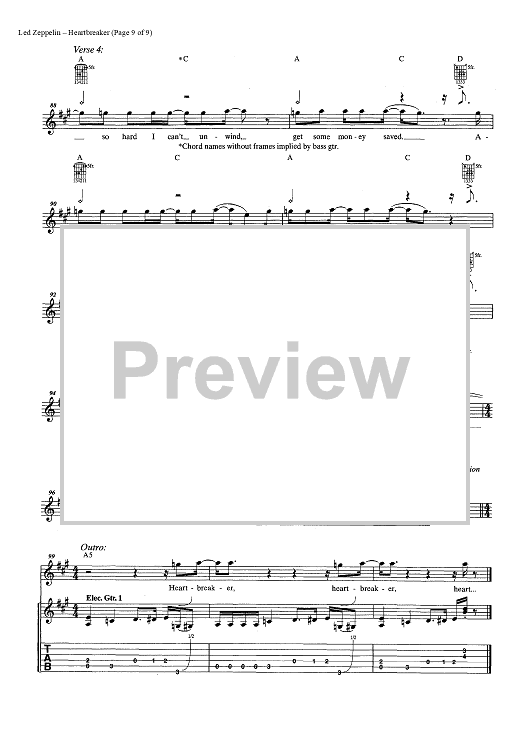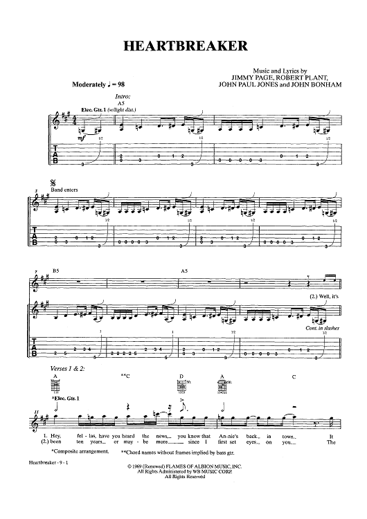 "Heartbreaker" Sheet Music by Led Zeppelin