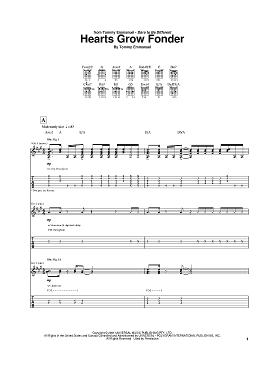 Digital Sheet Music for Hearts Grow Fonder by Tommy Emmanuel scored for Guitar Tab; id:401070