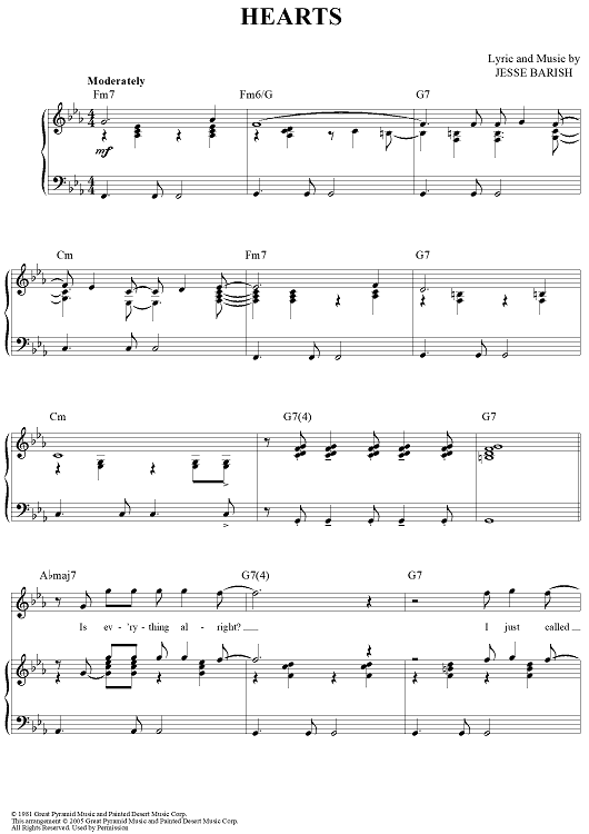 Digital Sheet Music for Hearts by Marty Balin, Jesse Barish scored for Piano/Vocal/Chords; id:315118