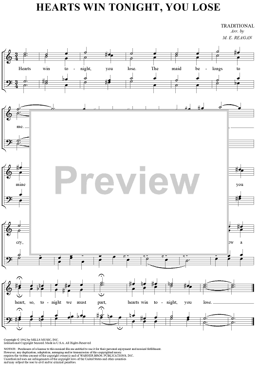 Digital Sheet Music for Hearts Win To-Night, You Lose by M. E. Reagan, Traditional scored for Barbershop Quartet; id:261156