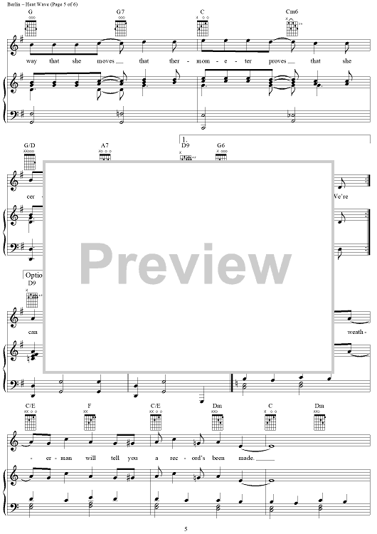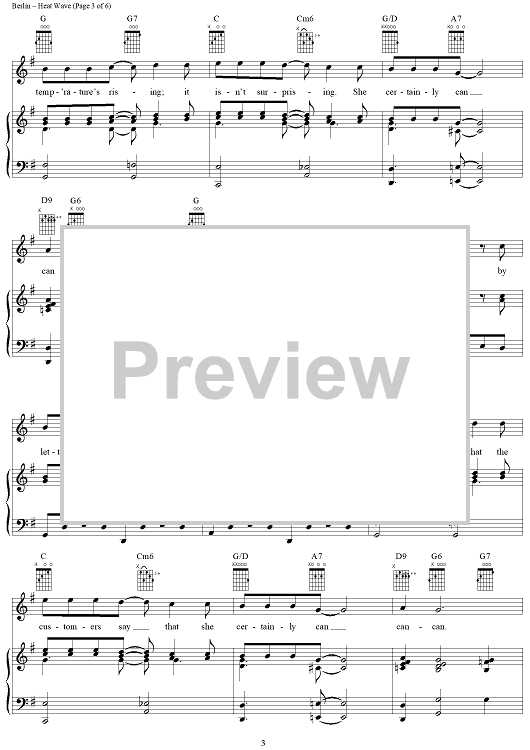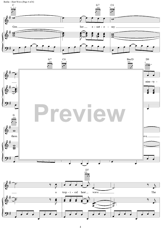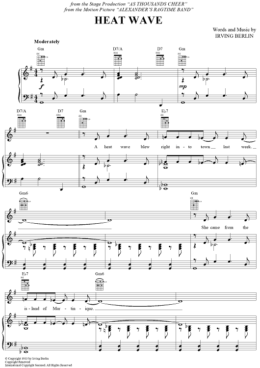 Digital Sheet Music for Heat Wave by Irving Berlin, Ethel Merman, Ella Fitzgerald, Mildred Bailey, Ethel Waters, Marilyn Monroe scored for Piano/Vocal/Chords; id:367149
