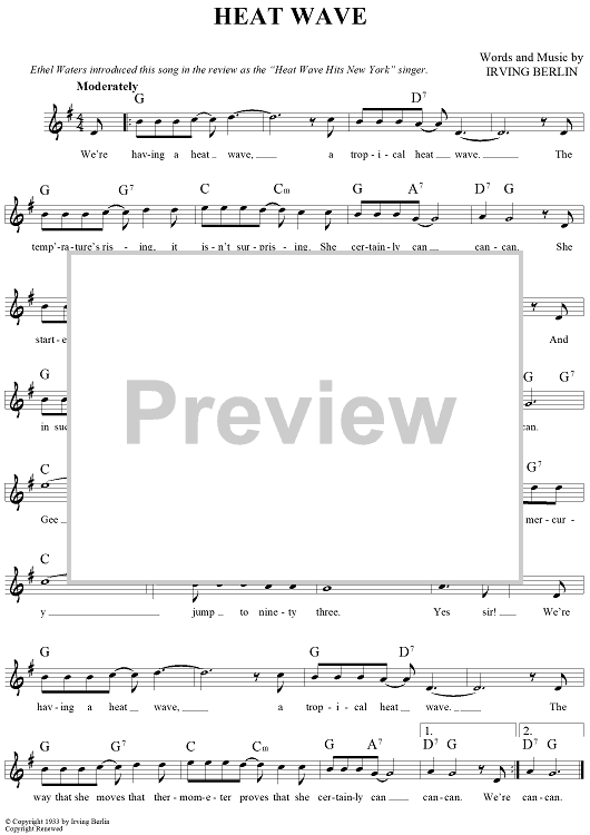 Digital Sheet Music for Heat Wave by Irving Berlin scored for Lead Sheet; id:441542