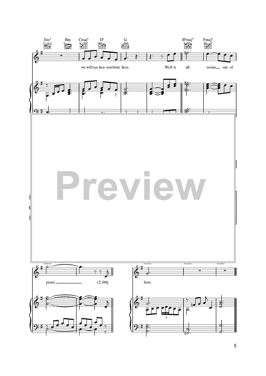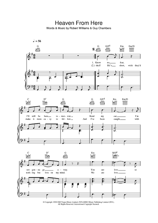 Digital Sheet Music for Heaven From Here by Robbie Williams, Guy Chambers scored for Piano/Vocal/Chords; id:401259