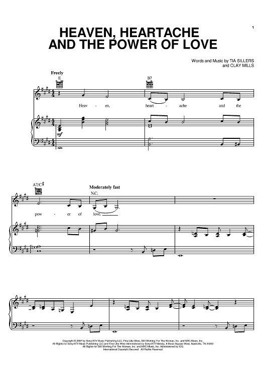 Digital Sheet Music for Heaven, Heartache And The Power Of Love by Trisha Yearwood, Tia Sillers, Clay Mills scored for Piano/Vocal/Chords; id:402741