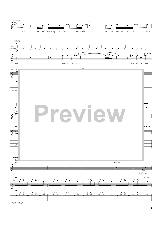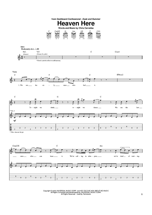 Digital Sheet Music for Heaven Here by Chris Carrabba, Dashboard Confessional scored for Guitar Tab; id:397594
