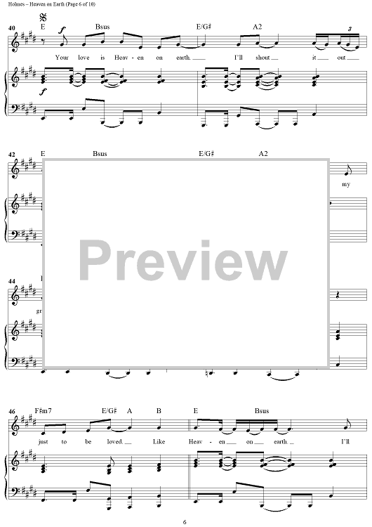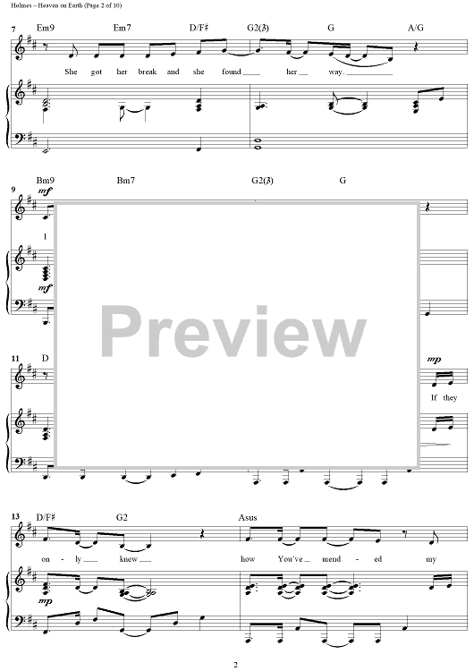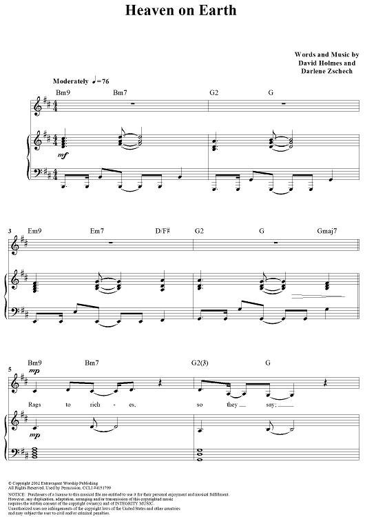 Digital Sheet Music for Heaven on Earth by Darlene Zschech, David Holmes scored for Piano/Vocal/Chords; id:319098