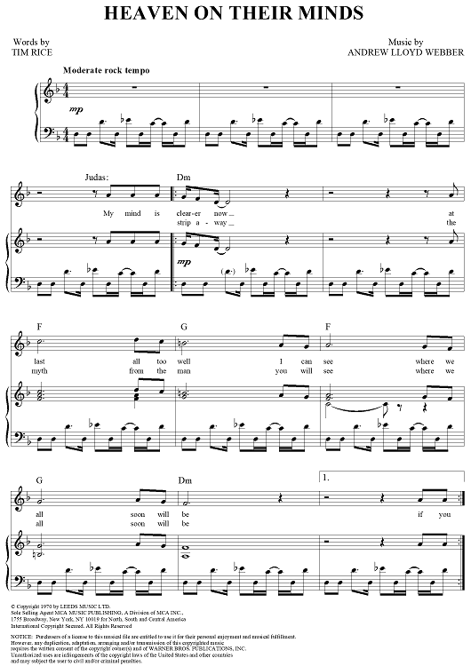 Digital Sheet Music for Heaven on Their Minds by Andrew Lloyd Webber, Tim Rice scored for Piano/Vocal/Chords; id:296548